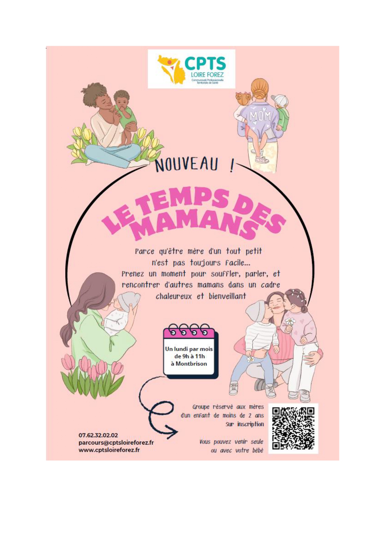 A partir de janvier 2026, La CPTS Loire Forez proposera des groupes d’échange entre mamans, dans le cadre de ses missions de prévention et dans la continuité des travaux menés avec le Centre hospitalier du Forez (1000ers jours de l’enfant).